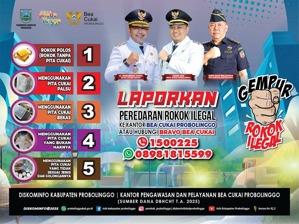 Jika masyarakat menemukan adanya pelanggaran rokok ilegal tersebut maka dapat melaporkan langsung kepada Kantor Bea Cukai Probolinggo atau melalui layanan pengaduan di nomor 1500225 dan 08981815599 (WhatsApp).